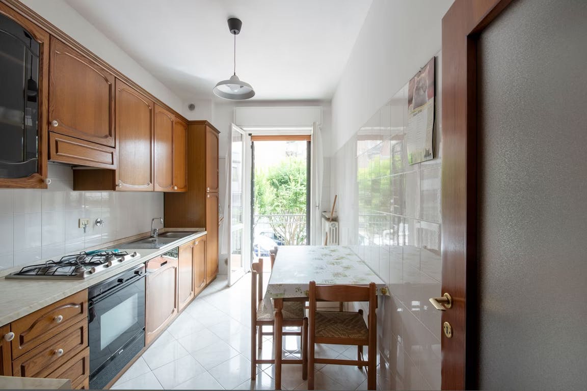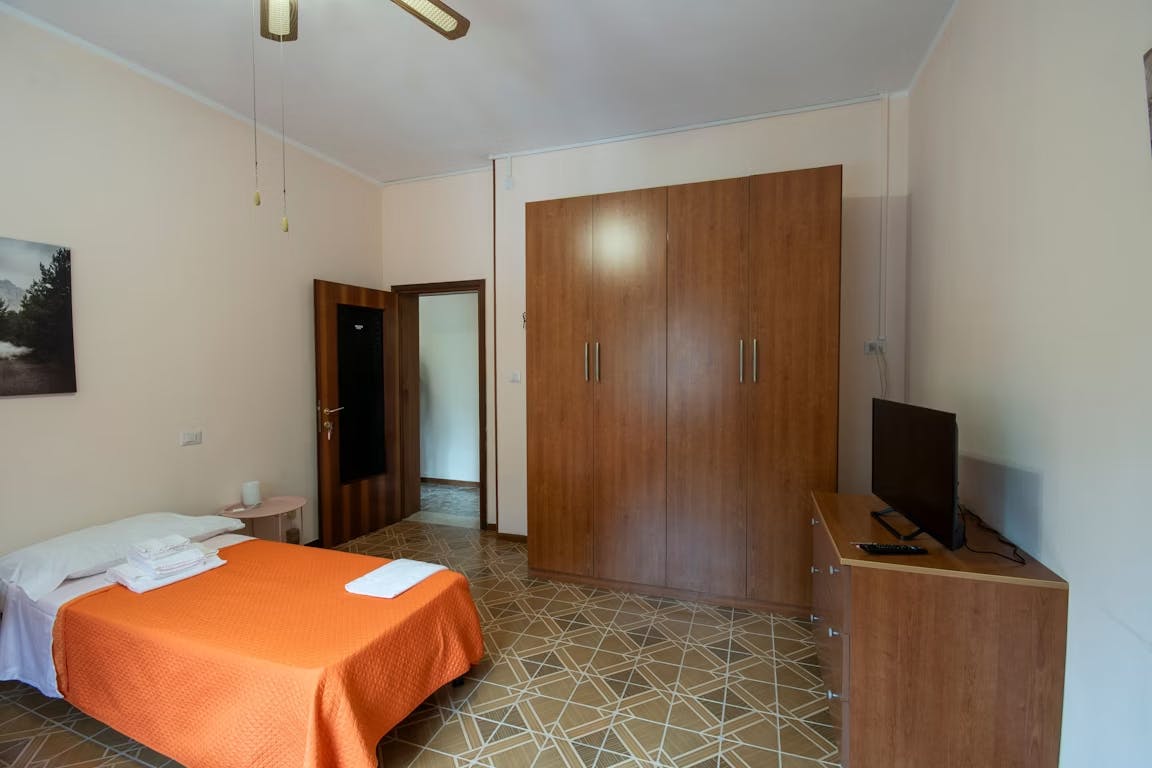 FARE BnB presents ROOM VIA MONTE 14, the property offers welcoming hospitality in a quiet area surrounded by greenery, located in a beautiful residential neighborhood. It is located on the first floor of a beautiful building with a lift, making it comfortable and easily accessible for everyone. Guests have access to a spacious shared kitchen fully equipped with everything necessary, bright and with a balcony, perfect for relaxing. The shared bathroom recently renovated has a washing machine. There are 2 rooms, comfortable and well furnished A stay at "Room Via Monte 14" is ideal for those who want tranquility without giving up the convenience of being close to points of interest and essential services. The common areas are equipped with a video surveillance system, to ensure safety and tranquility during the entire stay. The combination of high quality services and a central location make our property the ideal choice for any type of stay, both short and long